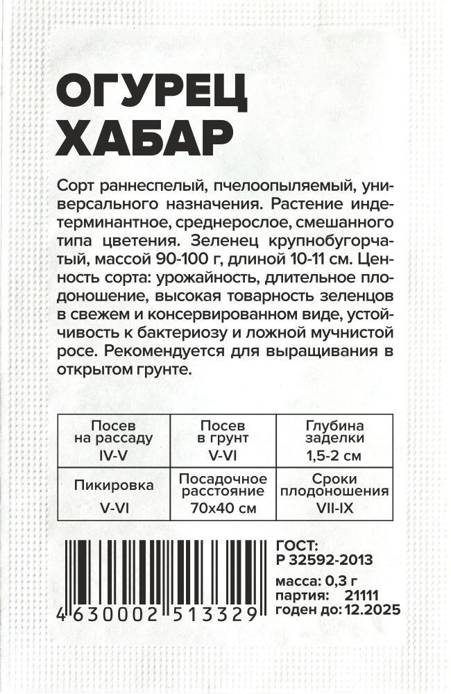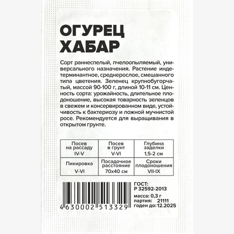 Огурец Хабар/Сем Алт/бп 0,3 гр.