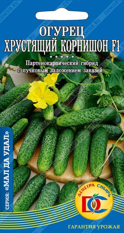 Раннеспелый (45-47 дней) партенокарпический гибрид, корнишонного типа, для открытого и защищенного грунта. Растение сильнорослое с пучковым образованием завязи. Плоды мелкобугорчатые, длиной 8-10 см, хрустящие, отличного вкуса, без горечи и пустот. Используются для потребления в свежем виде и для консервирования.