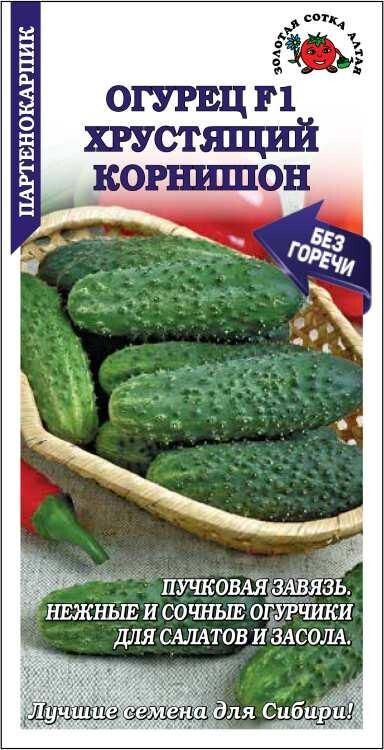 Отличный партенокарпический гибрид с пучковым заложением завязей. От всходов до плодоношения 45-47 дней. Растение женского типа цветения. Корнишоны мелкобугорчатые, длиной 8-10 см, плотные и хрустящие, нежные, сочные, очень вкусные, не образуют пустот и не имеют горечи. Гибрид используется в свежем виде, прекрасно подходит для засолки, маринования и приготовления малосольных огурчиков.