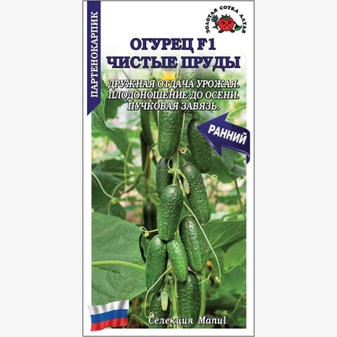 Ранний партенокарпический гибрид для открытого и защищенного грунта. Срок созревания 39-42 дня. Растение средней силы роста, средневетвистое, женского типа цветения с пучковой завязью (до 4-6) и дружной массированной отдачей урожая. Зеленцы бугорчатые, длиной 10-12 см, плотные, сочные и хрустящие, с великолепными вкусовыми и засолочными качествами. Гибрид теневыносливый, холодостойкий, с комплексной устойчивостью к болезням и плодоношением до осенних заморозков.