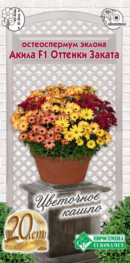 Остеоспермум является очень красивым и оригинальным растением, которое станет украшением любого садового участка. В умеренных широтах культивируется как однолетник. Африканская или голубоглазая ромашка, капская маргаритка – эффектная культура, появившаяся в России сравнительно недавно, но уже завоевавшая популярность у цветоводов. Селекционерами выведены различные разновидности этого растения, поражающего своей необычной раскраской. Акила- популярная серия остеоспермума, сочетающего в себе превосходную декоративность, неприхотливость и длительное цветение. Отличается однородностью растений, фантастическими окрасками цветков, ранним массовым цветением, большим количеством боковых побегов и устойчивостью к высоким температурам. Рекомендуется для больших ландшафтных посадок, пейзажных групп, больших напольных вазонов.