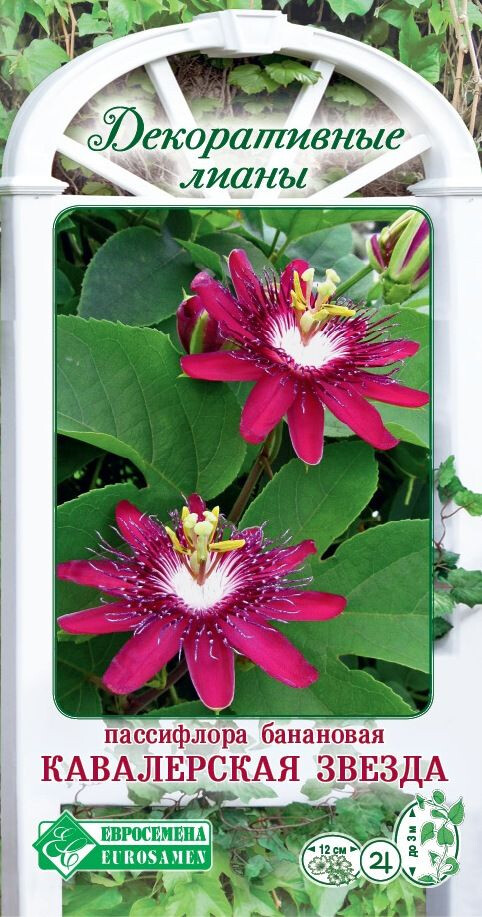 Пассифлора – удивительный экзот, принадлежащий к семейству Страстоцветные. С тех пор, как была открыта пассифлора, люди не перестают восхищаться ею – у красавицы из тропиков яркие запоминающиеся цветы. Трудно подобрать подходящие эпитеты для описания всей красоты цветущей пассифлоры, этой вечнозеленой лианы, увидев которую лишь один раз, запоминаешь на всю жизнь. Такая красота никого не оставит равнодушным и при правильном уходе она долго будет радовать роскошными цветками. У испанцев этот цветок ассоциируется с терновым венцом, у японцев – с часами, а в России ему дали имя кавалерская звезда, которое, пожалуй, наиболее точно определяет его суть. Он действительно очень похож на орден. Пассифлора банановая, пожалуй, одна из самых декоративных лиан, отличающаяся красивыми яркими цветками до 12 см в диаметре. Съедобные плоды продолговатые, желто - золотистого цвета. Растет быстро и плодоносит очень обильно, урожай дает уже на первом году жизни. В открытом грунте культивируется как однолетник.