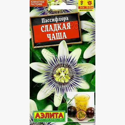 Неприхотливая в выращивании тропическая лиана, известная также под названиями «пурпурная гранадилла» и «маракуйя». Рекомендуется для выращивания в вертикальной и ампельной культуре в комнатах и зимних садах. Побеги длиной 3-4 м имеют красивые резные листья и прочные усы, которыми лиана цепляется за опору – решетку, шнур и т.п. Цветение длится с апреля по ноябрь. Оригинальные и ароматные, самоопыляющиеся цветы со временем превращаются в экзотические душистые фрукты замечательного вкуса, размером с куриное яйцо. Летом растение можно держать на открытом воздухе, а перед заморозками вернуть в комнату или зимний сад.