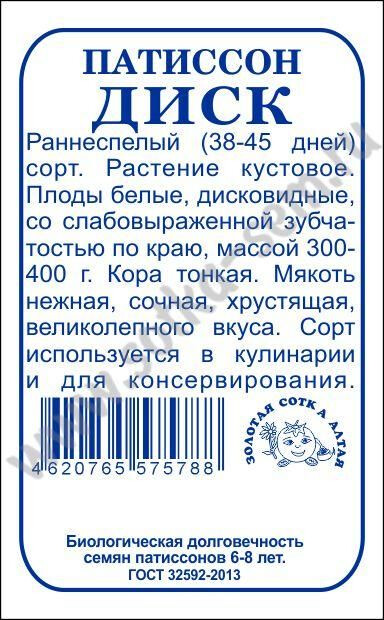 Ценный диетический овощ. Сорт ско- роспелый, холодостойкий, характе- ризуется высокими темпами отдачи раннего урожая. Растение кустовое, длина стебля около 35 см, малооблис- твенное, что облегчает сбор урожая. Плоды белые, дисковидные, слабозуб- чатые или с округлыми краями, средней массой 300-400 г. Кора тонкая. Мякоть нежная, сочная, хрустящая, великолепного вкуса. Используют в кулинарии и для консервирования: мелкие плоды прекрасно подходят для цельноплод- ного, крупные – для консервирования кусочками.