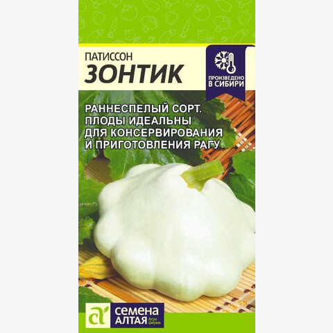 Сорт раннеспелый. Растение кустовое или полукустовое. Плоды чашевидные или колокольчатые, с зубчатыми краями, гладкие или слабобугристые, массой 0,8-1,4 кг. Мякоть белая, плотная. Нежные плоды очень хороши для консервирования и в приготовлении овощного рагу. Место посадки: легкие плодородные нейтральные почвы. Лучшими предшественниками являются крестоцветные (разные виды капусты), пасленовые Освещение: освещенные участки, хорошо переносят затенение Предпосевная подготовка: не требуется. Для улучшения всхожести выбирают семена возрастом 3-5 лет, замачивают в 1% растворе марганцовки на 15 минут Сроки посева: при прогревании почвы до 12-15 °C. Растение не переносит заморозков Посев на рассаду: за 25-30 дней до высадки. Посев проводят в рассадные емкости 0,5 л в рыхлый, плодородный грунт. Семена заделывают в почву на глубину 2,5-3 см, обильно увлажняют и накрывают пленкой до появления всходов. Готовая к высадке рассада должна иметь 4-5 настоящих листьев Посев в грунт: посев проводят, когда почва прогреется до 10-12°C (апрель-июнь). В лунку насыпают перегной, который немного присыпают землей, укладывают 2-3 семени и засыпают торфоземляной смесью. Посадочный интервал 60х60 см. Глубина заделки семян — 4-5 см Пикировка/перевалка: рассаду закаливают, высадку проводят при среднесуточной температуре не ниже 15°C. Растения высаживают без повреждения земляного кома на высоту корневой шейки, без заглубления. Первые 3-5 дней притеняют Уход: не требует формирования. Хорошо отзывается на мульчирование почвы вокруг растений свежескошенной травой и 1-2 подкормки органическими удобрениями Сбор урожая: проводится выборочно, по мере достижения плодами технической зрелости, когда их размер достигнет 6-10 см в диаметре для консервации и 10-12 см для приготовления рагу, икры, фарширования