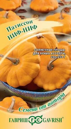 Патиссон входит в многочисленное семейство Тыквенные, но по полезным свойствам, химическому составу и вкусовым качествам во многом превосходит кабачок. Необычная форма солнечных плодов при подаче эффектно смотрится на столе в фаршированном виде. При консервировании молодых патиссончиков в банках красиво смотрится вместе с сортами Наф-наф и Нуф-нуф. Урожайный, среднеспелый (60-70 дней от полных всходов до технической спелости), неприхотливый сорт. Растение кустовое. Гладкие плоды тарелочной формы при созревании меняют окраску от ярко-желтой до оранжевой. Масса готовых патиссонов 230-250 г. Мякоть очень нежная, кремовая. Используют в домашней кулинарии: для тушения, запекания, маринования. Отличается хорошей лежкостью и устойчивостью к ложной мучнистой росе. Выращивают прямым посевом в грунт в конце мая-июне. На рассаду высевают в конце апреля. Хорошо отзывается на внесение органических удобрений.