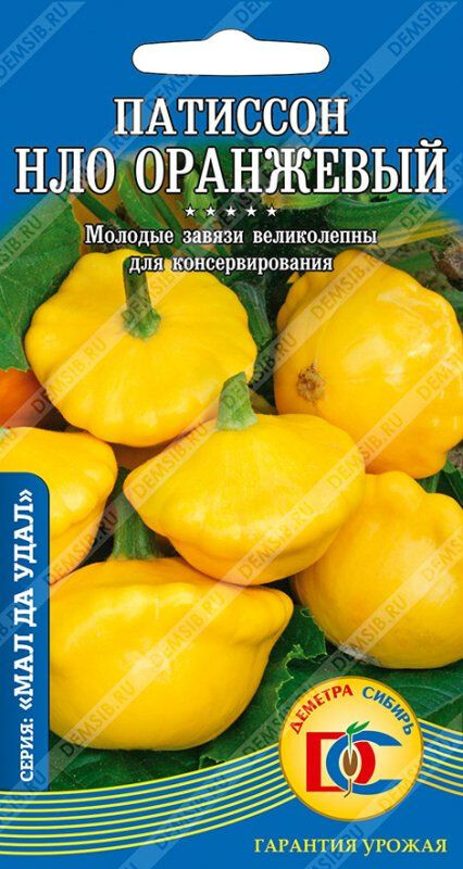 Раннеспелый (40-45 дней) высокоурожайный сорт. Растение кустовое, с обильным плодоношением (20-25 плодов). Плоды дисковидной формы, с зубчатыми краями, гладкие, желто-оранжевые, массой 0,4-0,5 кг. Мякоть белая, нежная, сочная. Используют молодые завязи, когда мякоть нежная и семена не развиты. Ценится за красивую форму плодов, прекрасные вкусовые и засолочные качества.