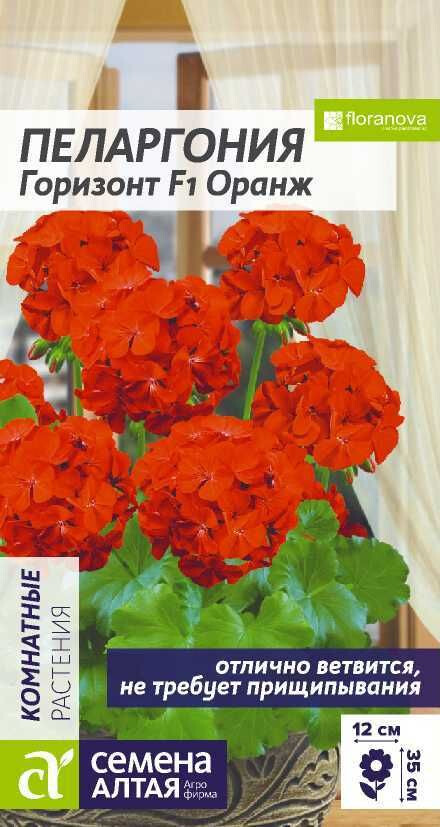 Великолепный гибрид! Многолетнее растение, выращиваемое как комнатное или садовое однолетнее. Формирует объемный и компактный кустик высотой 30-35 см. Простые крупные цветки собраны в огромные шапки ярко-оранжевых шаровидных соцветий 10-12 см в диаметре. Серия специально предназначена для выращивания в горшках. Отличается повышенной однородностью и необыкновенной обильностью цветения. Пеларгония Горизонт широко используется в озеленении лоджий, веранд, балконов, а также для создания ярких композиций в саду. Одно из самых неприхотливых растений, уход за которым не требует значительных усилий. Пеларгония светолюбива, легко переносит недостаток влаги. Предпочитает влагоёмкую рыхлую питательную почву с чуть кислой или нейтральной реакцией. Семена на рассаду высевают с января по сентябрь. Глубина заделки – 0,5-1,0 см. Для получения наилучшего результата посев рекомендуем проводить в торфяные таблетки (одно семя в таблетку). Посевы накрывают пленкой или стеклом и ставят в светлое теплое место. При температуре +20-21°С всходы появляются на 7-14 день. В период короткого светового дня им требуется досвечивание фитолампой, при недостаточном освещении они могут вытянуться. В фазе 2-3-х настоящих листьев сеянцы пикируют в отдельные горшки, обеспечив дренаж. В сад растения можно высаживать с конца мая, когда минует угроза заморозков. Посадочный интервал – 30-40 см. Для увеличения количества побегов и лучшего кущения в фазе 4-5 пар листьев проводят формирующую прищипку. В теплое время года растениям необходим обильный полив, зимой поливают умеренно. Для обильного и продолжительного цветения необходимо своевременно удалять увядающие соцветия и листья, после цветения проводить подкормку комплексными минеральными удобрениями, а также микроудобрениями, особенно важны магний и йод.