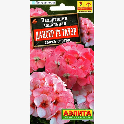 Dancer (Танцор) – серия гибридной пеларгонии английской селекции. Идеально подходит для выращивания в комнатах и садовых цветниках. Обладает исключительной однородностью растений высокого качества. Объемные кусты высотой 30-35 см и шириной 25-30 см цветут на протяжении всего лета. Многочисленные цветоносы увенчаны шапками соцветий Ø 10-12 см. Выразительные листья с декоративным ободком имеют характерный аромат с фитонцидным действием. Серия прекрасно себя показывает в стиле русской усадьбы, английском, кантри- и прованс-стиле.
