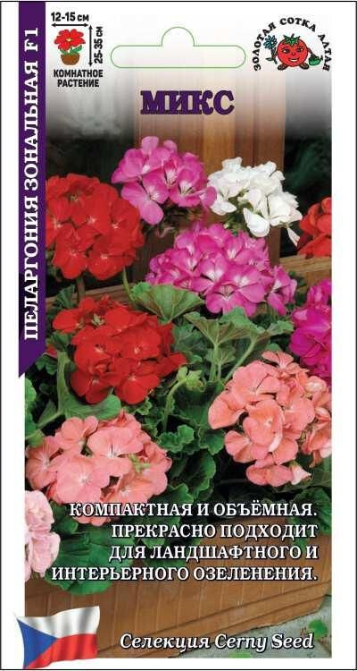 Популярное многолетнее комнатное растение, с успехом применяемое в ландшафтном и интерьерном озеленении. Смесь представлена зеленолистными и коричневолистными гибридами, которые отличаются эффектной декоративной листвой и огромными соцветиями, характеризуются ранним цветением, объемным и компактным кустом. Пеларгония великолепна на клумбах, в бордюрах и рабатках, а использование гибридов с различной окраской соцветий и листьев позволяет создавать замысловатые узоры, ткать цветочные ковры. Прекрасное украшение окон, балконов и лоджий, веранд, террас и патио двориков.