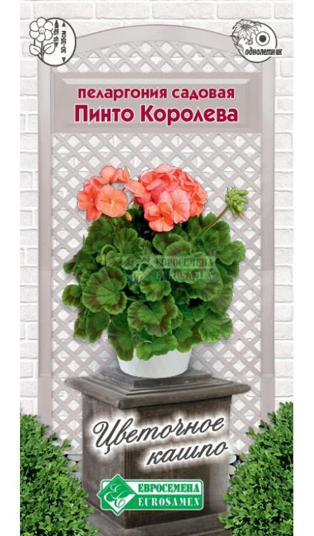 Серия пеларгонии садовой Пинто- это мощная, хорошо ветвящаяся пеларгония премиум класса. Растение высотой 30-35 см с цветками, собранными в соцветия в виде больших шаров плотных цветков самых разнообразных расцветок на компактных, не вытянутых цветоносах. Серия специально предназначена для выращивания в горшках. Отличается повышенной однородностью и необыкновенной обильностью цветения. Пинто Фея- герань с уникальной темно-лососевой окраской, яркие цветки которой собраны в шаровидные соцветия диаметром в 10-12 см и необычайно эффектны и привлекательны. Красивые круглые листья с сильно-волнистым краем придают ей еще большее очарование. Широко применяется для выращивания в горшках, вазонах, клумбах открытого грунта, привнесет в любой уголок сада нежность и обаяние.