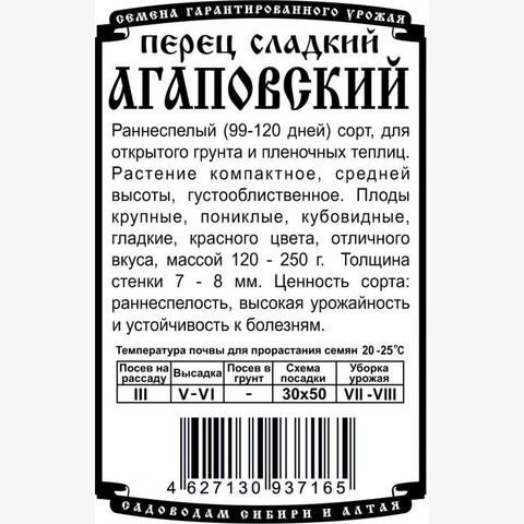 Раннеспелый (99-120 дней) сорт, для открытого грунта и пленочных теплиц. Растение компактное, средней высоты, густооблиственное. Плоды крупные, пониклые, кубовидные, гладкие, красного цвета, отличного вкуса, массой 120 - 250 г. Толщина стенки 7 - 8 мм. Ценность сорта: раннеспелость, высокая урожайность и устойчивость к болезням.