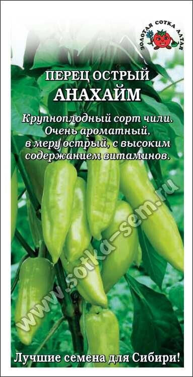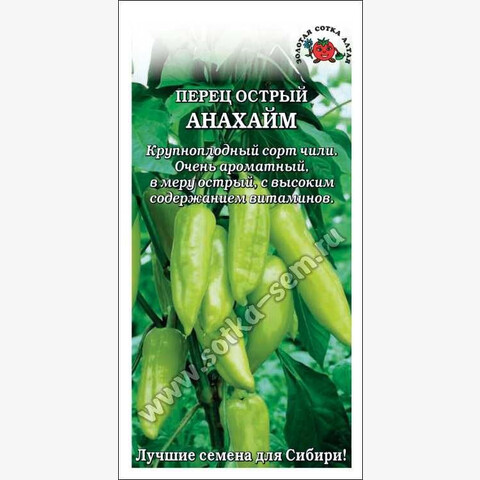 Крупноплодный и урожайный сорт, родиной которого является Калифорния (Анахайм). Срок созревания около 90 дней. Растение среднерослое, хорошо облиственное. Плоды висячие, в длину могут достигать 15-16 см, конусовидно-уплощенной формы, глянцевые. Окраска в технической спелости зеленая, в биологической – красная. Мякоть очень ароматная, характеризуется в меру острым вкусом (500-2500 единиц по шкале Сковилла). Сорт отличается высоким содержанием витаминов и устойчивостью к болезням. Используется в свежем виде и в кулинарии, в том числе для запекания и фарширования, подходит для консервирования и приготовления соусов. В холодных закусках и салатах острыми остаются сами перчики, а при нагревании острота выходит в блюдо.