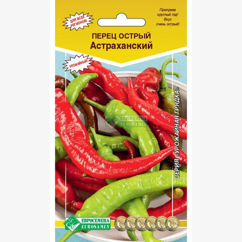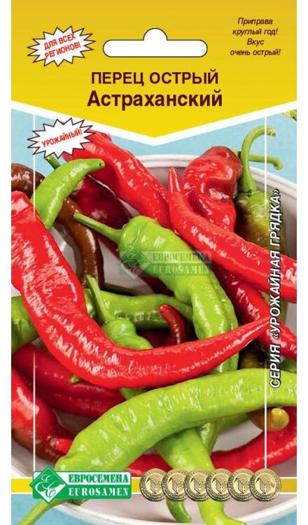 Острый, горький, жгучий перец — продукт необычный, получивший свое название от имени страны, где его начали выращивать. Во время его поедания у человека повышается пульс, расширяются зрачки, а в организме синтезируются гормоны радости эндорфины, появляется чувство эйфории. Сейчас существует около двух тысяч сортов растения, и каждый из них имеет свой химический состав, различаются по цвету, размеру и форме, кроме этого, каждый вид имеет разную степень жгучести. Астраханский-среднеспелый сорт для открытого грунта. Период от всходов до начала созревания плодов 120-145 дней. Растение компактное, высотой 50-65 см. Плоды красивой конусовидной формы, пониклые, гладкие, красные. Длина 6-9 см. Вкус острый. Используют как приправу к блюдам, в качестве специй при квашении, мариновании и консервировании, в свежем виде и для замораживания.