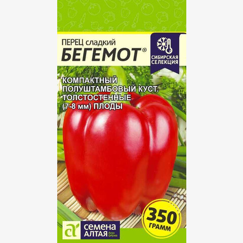 Селекция Агрофирмы Семена Алтая. Среднеспелый сорт. Растение полураскидистое, компактное, средней высоты, куст полуштамбовый. Плоды пониклые, кубовидные, массой 120-350 г, толстостенные, 7-8 мм, в биологической спелости темно-красные, глянцевые, в технической – темно-зеленые. Число гнезд 3-4. Мякоть плодов ароматная, с насыщенным вкусом. Сорт универсального использования. Место посадки: легкие плодородные нейтральные почвы. Выращивают после моркови, капусты, свеклы, бобовых и тыквенных культур Освещение: обильное, переносит легкое затенение Предпосевная подготовка: для стимулирования прорастания перед посевом семена перца замочить на 15 минут в 1% растворе марганцовки, затем промыть и подсушить Сроки посева: за 75-85 дней до высадки (февраль-март) Посев на рассаду: семена раскладывают на влажный плодородный рыхлый нейтральный грунт, предварительно хорошо уплотнив основание. Присыпают слоем грунта 0,8-1 см, уплотняют, обильно поливают, накрывают пленкой и размещают в теплом месте. Оптимальная температура для проращивания перца 25-27°С. При температуре грунта 15°С и ниже появление всходов затягивается до 4-6 недель Посев в грунт: не предусмотрено Пикировка/перевалка: сеянцы переваливают в отдельные стаканы 0,5 л грунта в фазе 2-4 настоящих листьев без заглубления. Корневая шейка должна оставаться на уровне рассадного ящика. Высадка в грунт: производится в возрасте рассады 75-85 дней, когда почва прогреется до 15°С и минует угроза возвратных заморозков. Рассаду закаливают. Растения высаживают на расстоянии 40 см друг от друга Уход: сорта перцев от Семена Алтая не требуют формировки. Растения рекомендовано подвязывать. Полив равномерный, почва всегда должна оставаться слегка увлажненной Сбор урожая: начинают в фазе технической спелости (зеленые и белые плоды), продолжают по мере созревания