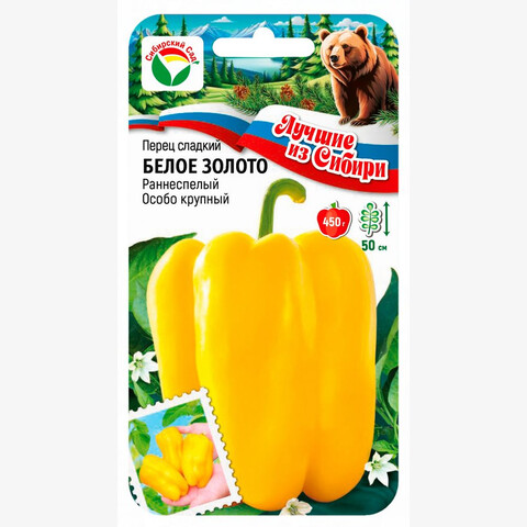 Особо крупноплодный раннеспелый сорт перца. Куст высотой 40-50см. Плоды гигантские, кубовидной формы, массой до 450г, светящейся жемчужно-желтой окраски. Толщина стенки до 10мм. Нежно-пряного, сладкого вкуса. Сорт универсального назначения, для теплиц и открытого грунта. Для ускорения процесса всхожести семян, оздоровления растений, улучшения завязываемости плодов рекомендуется использовать специально разработанные стимуляторы роста и развития растений.