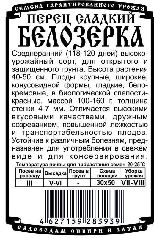 Среднеранний (118-120 дней) высокоурожайный сорт, для открытого и защищенного грунта. Высота растения 40-50 см. Плоды крупные, широкие, конусовидной формы, гладкие, бело-кремовые, в биологической спелости-красные, массой 100-160 г, толщина стенки 4-7 мм. Отличается высокими вкусовыми качествами, дружным созреванием, повышенной лежкостью и транспортабельностью плодов. Устойчив к различным болезням, предназначен для употребления в свежем виде и для консервирования.
