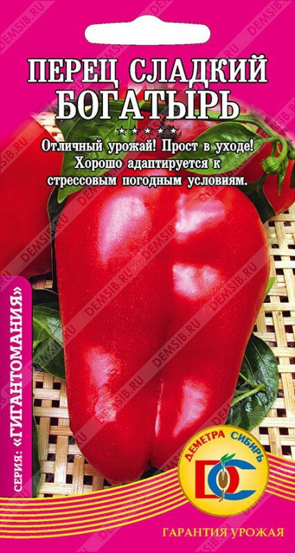 Среднеспелый (125-135 дней) сорт для открытого и защищенного грунта. Растение среднерослое, высотой 55-60 см. Плоды красные, крупные, массой 150-180 г, конусовидные. Мякоть сочная, нежная, сладкая, с повышенным содержанием витамина С. Сорт устойчив к недостаточной освещенности и колебаниям температуры. Рекомендуется для потребления в свежем виде и приготовления зимних заготовок.