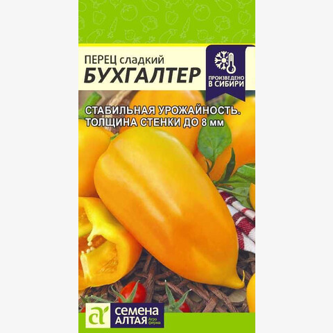 Среднеранний (100-105 дней) сорт для выращивания в открытом и защищенном грунте. Куст компактный, высотой 40-50 см, не требует формировки. Плоды конусовидные, глянцевые, в биологической спелости золотисто-желтые, массой 200-300 г, отдельные до 400 г, толщина стенки 7-8 мм. Сорт характеризуется стабильной высокой урожайностью в любых погодных условиях. Плоды очень сочные, имеют яркий аромат и вкус с фруктовыми нотками, отлично подходят для потребления в свежем виде, заморозки, фарширования, использования в заготовках. Место посадки: легкие плодородные нейтральные почвы. Выращивают после моркови, капусты, свеклы, бобовых и тыквенных культур Освещение: обильное, переносит легкое затенение Предпосевная подготовка: для стимулирования прорастания перед посевом семена перца замочить на 15 минут в 1% растворе марганцовки, затем промыть и подсушить Сроки посева: за 75-85 дней до высадки (февраль-март) Посев на рассаду: семена раскладывают на влажный плодородный рыхлый нейтральный грунт, предварительно хорошо уплотнив основание. Присыпают слоем грунта 0,8-1 см, уплотняют, обильно поливают, накрывают пленкой и размещают в теплом месте. Оптимальная температура для проращивания перца 25-27°С. При температуре грунта 15°С и ниже появление всходов затягивается до 4-6 недель Посев в грунт: не предусмотрено Пикировка/перевалка: сеянцы переваливают в отдельные стаканы 0,5 л грунта в фазе 2-4 настоящих листьев без заглубления. Корневая шейка должна оставаться на уровне рассадного ящика. Высадка в грунт: производится в возрасте рассады 75-85 дней, когда почва прогреется до 15°С и минует угроза возвратных заморозков. Рассаду закаливают. Растения высаживают на расстоянии 40 см друг от друга Уход: сорта перцев от Семена Алтая не требуют формировки. Растения рекомендовано подвязывать. Полив равномерный, почва всегда должна оставаться слегка увлажненной Сбор урожая: начинают в фазе технической спелости (зеленые и белые плоды), продолжают по мере созревания