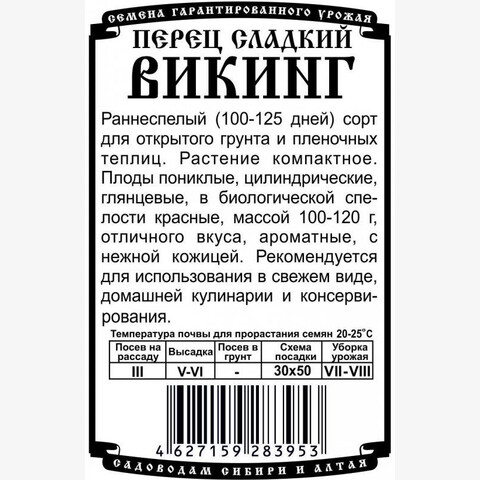 Раннеспелый (100-125 дней) сорт для открытого грунта и пленочных теплиц. Растение компактное. Плоды пониклые, цилиндрические, глянцевые, в биологической спелости красные, массой 100-120 г, отличного вкуса, ароматные, с нежной кожицей. Рекомендуется для использования в свежем виде, домашней кулинарии и консервирования.