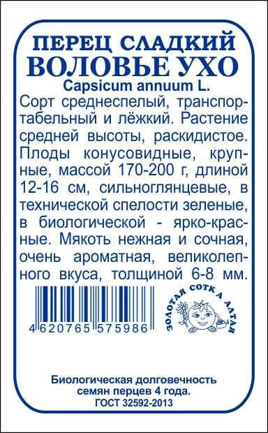 Перец Воловье ухо б/п /Сотка/ 0,2г/ среднесп. 170-200г 6-8мм конус красный/*1400