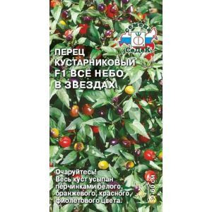 Очень красивый, обильно плодоносящий гибрид для выращивания в открытом и защищённом грунте, на клумбах и цветниках, зимних садах, на балконах и подоконниках. Растение раскидистое, сильнокустистое, сильноветвистое, высотой 50-60 см. Плоды многочисленные, мелкие, округлые, направлены вверх, массой 3 г, в технической спелости зеленовато-белые, по мере созревания становятся разноцветными: желтыми, оранжевыми, красными, темно-фиолетовыми. Ценность гибрида: высокая декоративность. Подходит для использования в домашней кулинарии: приготовления паприки, в качестве специи, соусов, различных паст и при консервировании овощей.