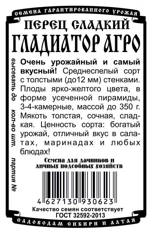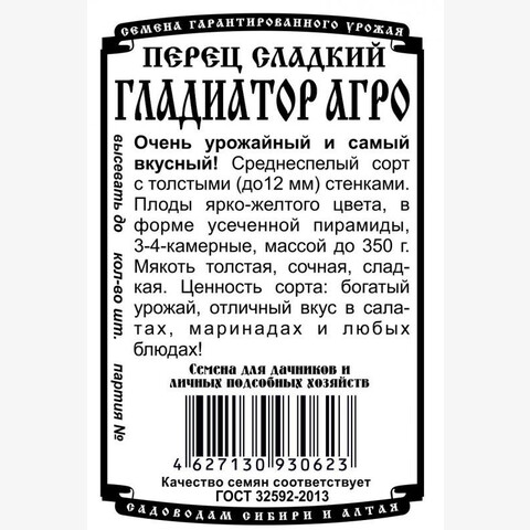 Очень урожайный и самый вкусный! Среднеспелый сорт с толстыми (до12 мм) стенками. Плоды ярко-желтого цвета, в форме усеченной пирамиды, 3-4-камерные, массой до 350 г. Мякоть толстая, сочная, сладкая. Ценность сорта: богатый урожай, отличный вкус в салатах, маринадах и любых блюдах!