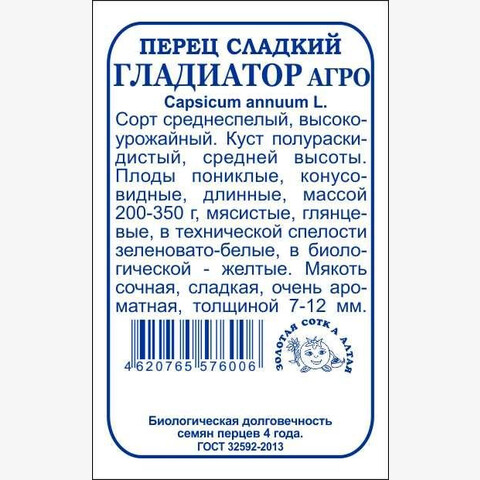 Сорт среднеспелый, высокоурожайный. От всходов до хозяйственной годности 120-130 дней. Растение полураскидистое, средней высоты. Плоды пониклые, конусовидные, длинные, массой 200-350 г, мясистые, глянцевые. Окраска в технической спелости зеленовато-белая, в биологической - желтая. Мякоть сочная, сладкая, очень ароматная, толщиной 7-12 мм. Сорт рекомендуется для использования в свежем виде, кулинарии и переработки.