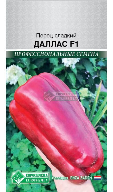 Болгарский сладкий перец должен присутствовать ежедневно у каждого на столе, съев один крупный перец можно полностью перекрыть суточную потребность в витамине С и А. Сегодня многие люди по достоинству оценили полезные свойства болгарского перца, особенно привлекает он гурманов за сочную хрустящую текстуру, характерный вкус и разнообразие цвета. Большинство гибридов перца сладкого ценятся за высокую урожайность, неприхотливость при культивировании и раннеспелость. Именно таким характеристиками наделен перец Даллас F1. Урожайный, неприхотливый, раннеспелый (95-110 дней от полных всходов до технической спелости) гибрид. Растение открытого типа, сильное, плодоносит в жарких условиях. Устойчиво к вирусу табачной мозаики. Для любого типа теплиц и открытого грунта. Плоды крупные, удлиненно-кубовидной формы, массой 200-250 грамм, с толщиной стенки 6-7 мм. Перцы в технической спелости - зеленые, в биологической спелости - темно-красные. Вкусовые качества перцев отличные, подходят для употребления в свежем виде, домашней кулинарии и консервирования. Рекомендуется для выращивания в открытом грунте и в теплицах.