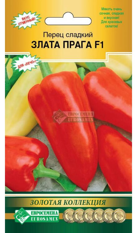 Болгарский сладкий перец должен присутствовать ежедневно у каждого на столе, съев один крупный перец можно полностью перекрыть суточную потребность в витамине С и А. Сегодня многие люди по достоинству оценили полезные свойства болгарского перца, особенно привлекает он гурманов за сочную хрустящую текстуру, характерный вкус и разнообразие цвета. Злата Прага F1- раннеспелый гибрид сладкого перца для выращивания в открытом грунте и под пленочными укрытиями в личных подсобных хозяйствах. Рекомендуется для использования в свежем виде, домашней кулинарии и консервирования. Растение полураскидистое, низкорослое. Лист среднего размера, светло-зеленый, слабо морщинистый. Плод пониклый, конусовидный, глянцевый. Окраска в технической спелости - зеленовато-белая, в биологической спелости - красная. Число гнезд 3-4. Масса плода 90-100 г, толщина стенки 5 мм. Вкус отличный. Плоды вкусны в свежем виде, украсят и разнообразят вкусовую гамму и расцветку свежих летних салатов. Урожайность товарных плодов в открытом грунте 3,6 кг/кв.м. Перцы богаты белками, углеводами, жирами, в них много каротина. Применяются в лечебном питании при упадке сил, малокровии, авитаминозах.
