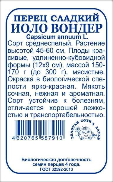 Перец Иоло вондер б/п /Сотка/ 0,2г/ среднеспел. до300г,12х9см/*1400