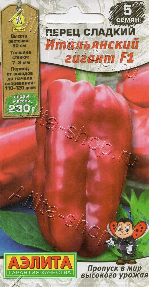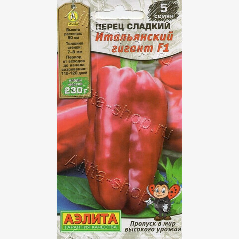 Крупноплодный раннеспелый гибрид. Рекомендуется для защищенного грунта и пленочных теплиц. От всходов до начала плодоношения проходит 110-120 дней. Растения полураскидистые, высотой 0,7-0,8 м. Плоды массой 200-230 г, глянцевые. Стенки толщиной 7-8 мм. В технической спелости имеют зеленую окраску, в биологической – красную. Перцы сочные, сладкие, ароматные, с высокими вкусовыми качествами. Прекрасно подходят для свежих салатов, приготовления лечо и других зимних заготовок. Гибрид устойчив к ВТМ, фузариозному увяданию и альтернариозу.