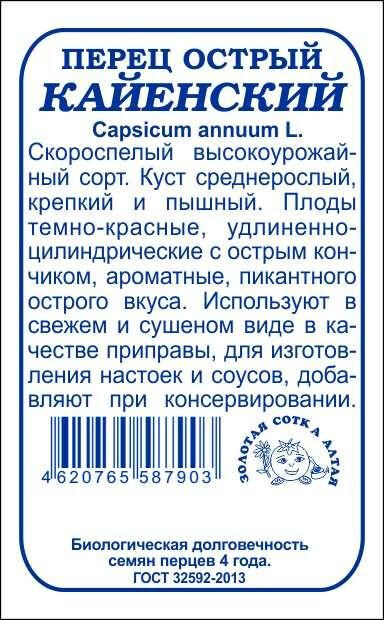 Скороспелый высокоурожайный сорт. Куст среднерослый, крепкий и пышный. Плоды удлиненно-цилиндрические с острым кончиком, темно-красные, очень ароматные, пикантного острого вкуса. Сорт используют в свежем и сушеном видев качестве приправы к супам, мясными рыбным блюдам, для изготовления настоек, добавляют при консервировании.