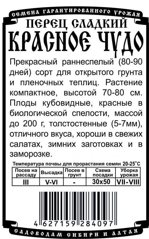 Прекрасный раннеспелый (75-80 дней) сорт для открытого грунта и пленочных теплиц. Растение компактное, высотой 70-80 см. Плоды кубовидные, красные в биологической спелости, массой до 200г, толстостенные (5-7мм), отличного вкуса, хороши в свежих салатах, зимних заготовках и в заморозке.