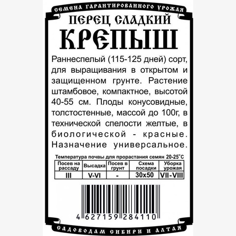 Раннеспелый (115-125 дней) сорт, для выращивания в открытом и защищенном грунте. Растение штамбовое, компактное, высотой 40-55 см. Плоды конусовидные, толстостенные, массой до 100г, в технической спелости желтые, в биологической - красные. Назначение универсальное.