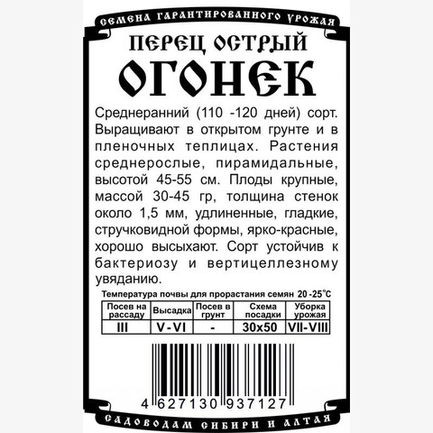 Среднеранний (110 -120 дней) сорт. Выращивают в открытом грунте и в пленочных теплицах. Растения среднерослые, пирамидальные, высотой 45-55 см. Плоды крупные, массой 30-45 г, толщина стенок около 1,5 мм, удлиненные, гладкие, стручковидной формы, ярко-красные, хорошо высыхают. Сорт устойчив к бактериозу и вертицеллезному увяданию.