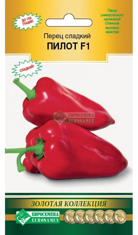 Болгарский сладкий перец должен присутствовать ежедневно у каждого на столе, съев один крупный перец можно полностью перекрыть суточную потребность в витамине С и А. Сегодня многие люди по достоинству оценили полезные свойства болгарского перца, особенно привлекает он гурманов за сочную хрустящую текстуру, характерный вкус и разнообразие цвета. Пилот - раннеспелый гибрид сладкого перца для открытого и защищенного грунта. С момента всходов до созревания плодов проходит около 120-130 дней. Растение средней силы роста, среднеоблиственное, с прочными ветвями, выдерживающими большое количество плодов. Плоды средних размеров, конусовидной формы, светло-зеленые в технической спелости и ярко-красные в биологической спелости. Перцы исключительно выровненные, глянцевые, длиной 12-15 см, массой 100-150 г и толщиной стенки до 6 мм, лежкие и транспортабельные. Плоды отличаются превосходными вкусовыми качествами: сочные, сладкие и ароматные. Перцы универсального назначения: хороши для потребления в свежем виде, приготовления салатов, консервации и для фаршировки.