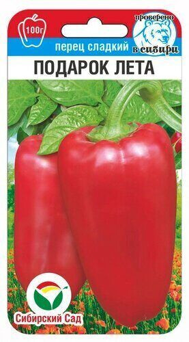 Раннеспелый сорт сибирской селекции устойчивый к суровым климатическим условиям. Выращивается в открытом грунте и под пленочными укрытиями. Гарантирует ежегодную стабильно высокую урожайность. Растение полураскидистое, высотой до 60см. Плоды конусовидные, светло-желтые -в технической спелости, в биологической - ярко-красные. Толщина стенки б-8мм. Масса плодов достигает 100г. Вкусовые и товарные качества урожая хорошие. Сорт универсальный, рекомендуется для употребления в свежем виде, кулинарии и переработки. Урожайность до 5кг/м2.