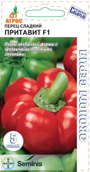 Среднеспелый уникальный гибрид с плодами, имеющими форму томата. Тип Томато Пеппер. Плоды длиной 5-6 см, диаметром 9-10 см, с чрезвычайно толстыми стенками. Окраска изменяется от зеленой в технической спелости до красной в биологической. Плоды перца ПРИТАВИТ F1 обладают превосходным, очень сладким вкусом. Особенности выращивания: рекомендуется для получения ранней продукции в пленочных укрытиях, а также в открытом грунте. - II-III - V-VI 50x70 VII-VIII