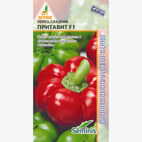 Среднеспелый уникальный гибрид с плодами, имеющими форму томата. Тип Томато Пеппер. Плоды длиной 5-6 см, диаметром 9-10 см, с чрезвычайно толстыми стенками. Окраска изменяется от зеленой в технической спелости до красной в биологической. Плоды перца ПРИТАВИТ F1 обладают превосходным, очень сладким вкусом. Особенности выращивания: рекомендуется для получения ранней продукции в пленочных укрытиях, а также в открытом грунте. - II-III - V-VI 50x70 VII-VIII