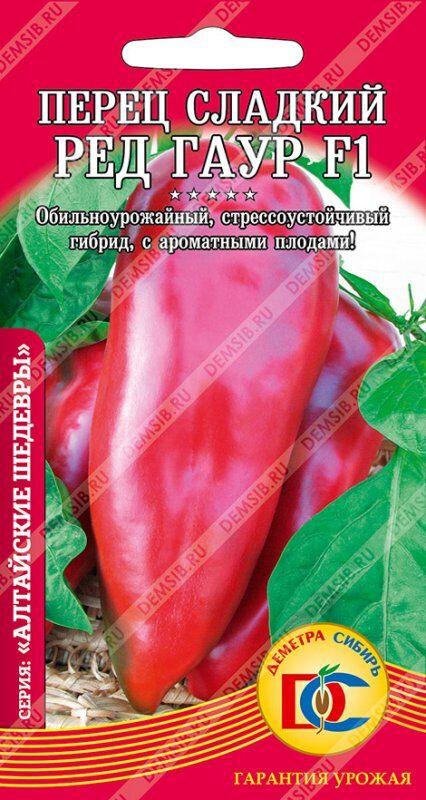 Очень крупные плоды! Среднеспелый (115-131 дней, до технической спелости) высокоурожайный гибрид, для открытого грунта и пленочных теплиц. Растение среднерослое, не раскидистое, высотой 60-70 см. Плоды ярко-красные, гофрированные, удлиненно-конусовидные, длиной до 18 см, массой 180-200 г, толщина стенок 8-10 мм. Мякоть сочная, сладкая, с высоким содержанием витамина C. Гибрид устойчив к недостаточной освещенности и пониженным температурам. Рекомендуется для приготовления салатов, зимних заготовок, замораживания.