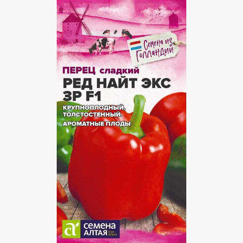 Среднеспелый высокоурожайный гибрид. Растение средней высоты, полураскидистое. Плоды крупные, кубовидные, массой 150-270 г. толстостенные, 6-8 мм, обладают великолепным вкусом, хрустящие, очень сочные. По мере созревания цвет плодов меняется от зеленого до темно-красного. Сорт обладает высокой урожайностью, как в открытом грунте, так и под пленочными укрытиями. Хорошо переносит неблагоприятные условия. Универсален в использовании, прекрасно подходит как для употребления в свежем виде, так и для консервирования. Место посадки: легкие плодородные нейтральные почвы. Выращивают после моркови, капусты, свеклы, бобовых и тыквенных культур Освещение: обильное, переносит легкое затенение Предпосевная подготовка: для стимулирования прорастания перед посевом семена перца замочить на 15 минут в 1% растворе марганцовки, затем промыть и подсушить Сроки посева: за 75-85 дней до высадки (февраль-март) Посев на рассаду: семена раскладывают на влажный плодородный рыхлый нейтральный грунт, предварительно хорошо уплотнив основание. Присыпают слоем грунта 0,8-1 см, уплотняют, обильно поливают, накрывают пленкой и размещают в теплом месте. Оптимальная температура для проращивания перца 25-27°С. При температуре грунта 15°С и ниже появление всходов затягивается до 4-6 недель Посев в грунт: не предусмотрено Пикировка/перевалка: сеянцы переваливают в отдельные стаканы 0,5 л грунта в фазе 2-4 настоящих листьев без заглубления. Корневая шейка должна оставаться на уровне рассадного ящика. Высадка в грунт: производится в возрасте рассады 75-85 дней, когда почва прогреется до 15°С и минует угроза возвратных заморозков. Рассаду закаливают. Растения высаживают на расстоянии 40 см друг от друга Уход: не требует формировки. Растения рекомендовано подвязывать. Полив равномерный, почва всегда должна оставаться слегка увлажненной Сбор урожая: начинают в фазе технической спелости (зеленые и белые плоды), продолжают по мере созревания