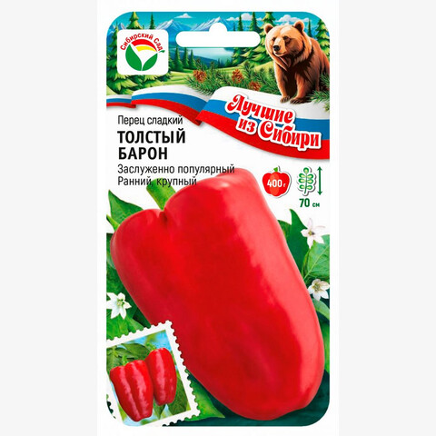 Раннеспелый крупноплодный сорт для выращивания в открытом и защищенном грунте. От всходов до технической спелости плодов 90-100 дней. Растение высотой 100-120 см. Плоды очень крупные, призмовидной формы, ярко- красного цвета, массой 200-500 г. Толщина стенки плода до 8 мм. Сорт устойчив к вирусу табачной мозаики. Урожайность сорта 7-14 кг с 1 кв. м в зависимости от условий выращивания. Для получения высоких урожаев рекомендуется при высадке на постоянное месторазмещать 3-5 растений на 1 кв. м, в прцессе вегетации осуществлять регулярные подкормки и поливы. Для ускорения процесса всхожести семян, оздоровления растений, улучшения завязываемости плодов рекомендуется использовать специально разработанные стимуляторы роста и развития растений.