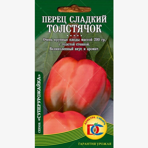 Среднеспелый высокоурожайный (120-130 дней ) сорт, предназначен для выращивания в открытом и защищенном грунте. Растения полураскидистые, высотой 50 см, одновременно завязывают 10-12 плодов. Плоды очень крупные, призмовидной формы, в технической спелости - зеленые, в биологической - красные, массой до 200 г, толщина стенки до 10 мм. Очень вкусные и ароматные. Подходят для переработки и консервирования.