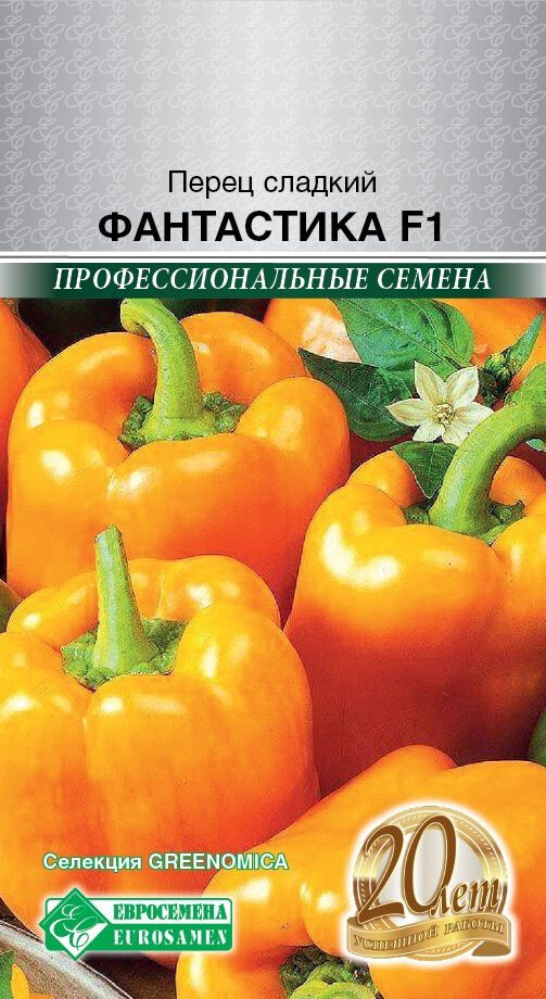 Болгарский сладкий перец должен присутствовать ежедневно у каждого на столе. В одном перчике - суточная потребность человека в витамине С. Сегодня многие люди по достоинству оценили полезные свойства болгарского перца, особенно привлекает он гурманов за сочную хрустящую текстуру, характерный вкус и разнообразие цвета. Большинство гибридов ценятся за высокую урожайность, неприхотливость и раннеспелость. Фантастика- среднеранний гибрид (100-110 дней от всходов до технической спелости) для выращивания в пленочных теплицах. Плоды кубовидной формы, 4-х камерные, длиной 10-12 см, диаметром 8-10 см, толщиной стенки 8-10 мм, массой 160-200 грамм. Окраска плода в технической спелости цвета белая, а в стадии биологической спелости интенсивно оранжевого цвета. Отличается высокими вкусовыми качествами, имеет интенсивный перечный аромат.