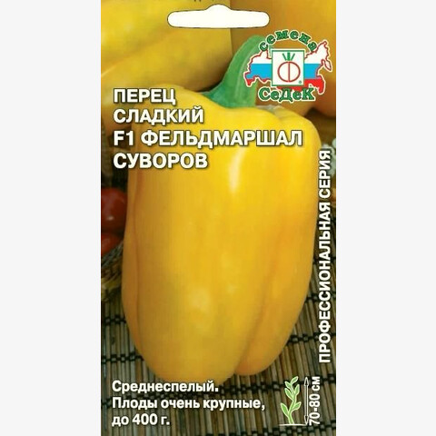 Среднеспелый (120-130 дней) гибрид для теплиц и пленочных укрытий. Растение высотой 70-80 см, среднеоблиственное, одновременно формирует на кусте 8-10 крупных красивых плодов. Плоды кубовидно-призмовидные, в технической спелости – темно-зеленые, в биологической – ярко-желтые, длиной 18-20 см, массой 350-400 г, сочные, сладкие. Толщина стенки 1 см. Урожайность 8-9 кг/м2. Ценность гибрида: устойчивость к комплексу болезней, стрессоустойчивость, высокое содержание витамина С и каротина, транспортабельность, пригодность к продолжительному хранению. Отличный продукт для фермерских продаж. Рекомендуется для употребления в свежем виде и переработки.