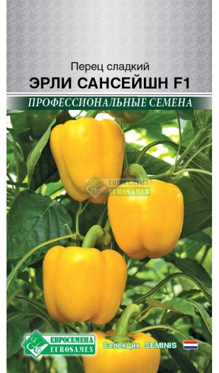 Болгарский сладкий перец должен присутствовать ежедневно у каждого на столе. В одном перчике - суточная потребность человека в витамине С. Сегодня многие люди по достоинству оценили полезные свойства болгарского перца, особенно привлекает он гурманов за сочную хрустящую текстуру, характерный вкус и разнообразие цвета. Большинство гибридов ценятся за высокую урожайность, неприхотливость и раннеспелость. Эрли Сансейшн- среднеспелый гибрид для выращивания в открытом грунте и в теплице. Плоды пониклые, кубовидной формы, мясистые, глянцевые, в биологической спелости желтого цвета, массой от 140 грамм до 250. Мякоть толщиной 6-9 мм, нежная и сочная, великолепного вкуса. Гибрид ценится за транспортабельность, высокую урожайность и отличное формирование плодов при высокой температуре воздуха. Рекомендуется для использования в свежем виде и домашней кулинарии.