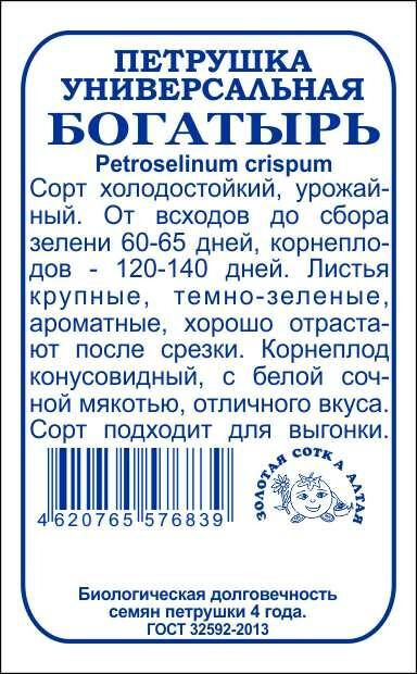 Сорт холодостойкий и теневыносливый. До сбора зелени 60-65 дней, корнеплодов - 120-140 дней. Розетка полуприподнятая. Листья крупные, темно-зеленые, очень ароматные, хорошо отрастают и долго сохраняют свежесть. Корнеплоды конусовидные, длиной около 20 см. Мякоть белая, сочная, нежная. Сорт прекрасно подходит для выгонки.