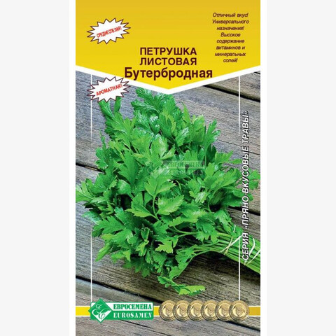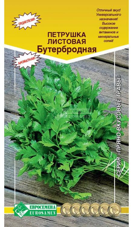 Ценная пряная культура, с высоким содержанием витаминов и минеральных солей. Среднеспелый сорт. Период от всходов до срезки листьев 65-75 дней. Розетка полувертикальная, с большим количеством листьев тёмно-зелёного цвета. Лист сильнорассеченный, гладкий. Зелень хорошо отрастает после срезки. Масса зелени с одного растения 60-100 г. Отличается холодостойкостью, рано весной даёт свежую зелень. Рекомендуется для использования в свежем виде как пряную зелень. Петрушка богата эфирным маслом, витаминами. В народной медицине ее используют для укрепления десен и как средство, сохраняющее зрение.