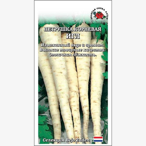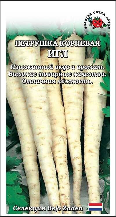 Отличный среднеспелый сорт. От всходов до технической спелости 120-130 дней. Лист темно-зеленый, среднерассеченный, с насыщенным ароматом. Корнеплод конусовидный, массой 100-150 г, гладкий, с красивой белой внутренней и внешней окраской, обладает изысканным вкусом и ароматом. Сорт используют в качестве приправы в свежем и сушеном виде. Корнеплоды подходят для свежей реализации, переработки и длительного хранения.